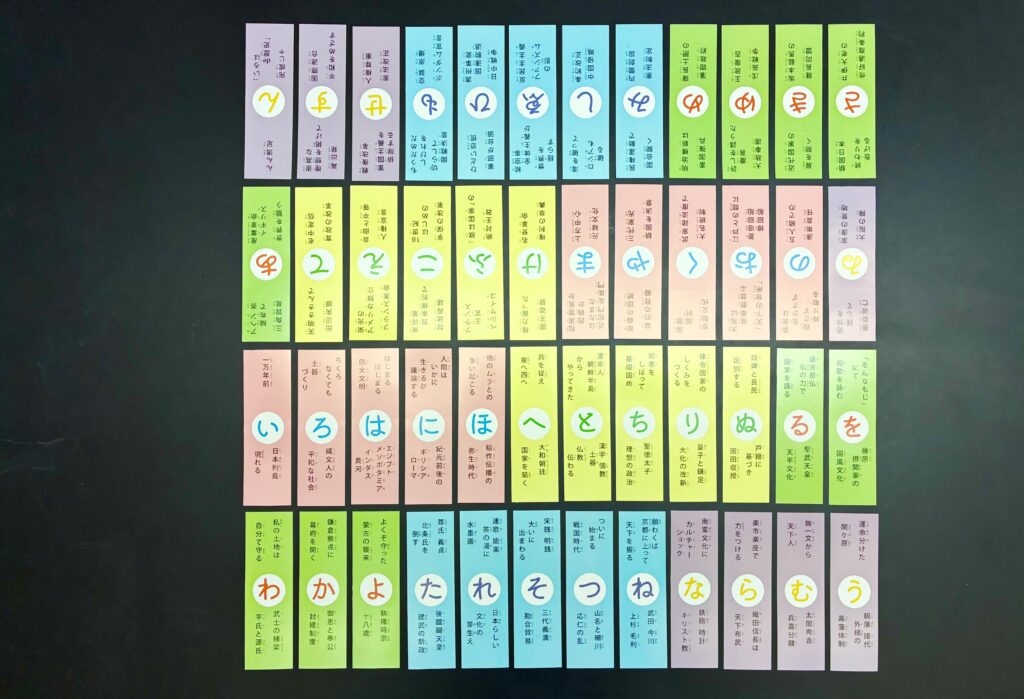 「いろはde歴史」は、千葉大学教育学部附属教員養成開発センターの松井聰教授が、長年にわたる教師経験の中で開発し、実践の中で改良を重ねてきた教材だという。歴史が苦手な子どもたちでも抵抗なく楽しめるように、遊びながら学べる仕組みをカルタに落とし込んだアイテムのようだ。