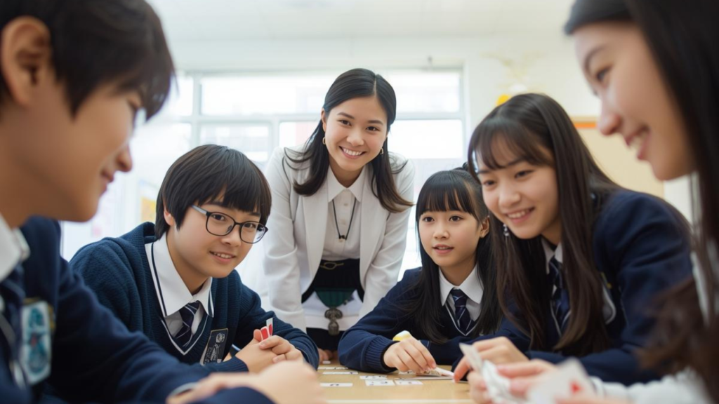 全クラスで授業実践した後は、カルタセットを学年の各クラスに分配する。生徒が自由に使う札はダウンロードで量産するのがいいだろう。ちなみに「昼休みにカルタやろうぜ!」と呼びかけるリーダーを指名したり、ジャンケンで勝った者が歌を読む役割をするなど、あらかじめルールを決めておくと生徒間での自然な活用が進みやすくなるのではないだろうか。